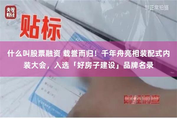 什么叫股票融资 2025年12月12日,第十二届“宜居中国”装配式内装修产业发展大会,暨中国建材工业经济研究会装配式建筑和绿色发展分会年会于北京召开,千年舟受邀参会,凭借硬核的技术实力,成功入选首批《好房子建设适用新产品、新技术(2025)》品牌,斩获权威认证! 01 千年舟荣登好房子建设品牌榜单 本次大会以“共创共营·启航同行”为主题,汇聚行业专家与龙头企业、行业翘楚、行业精英共探装配式内装修产业的创新路径与发展蓝图和发展新方向。千年舟深耕绿色环保新材料研发装配式内装应用领域多年,在装配式...