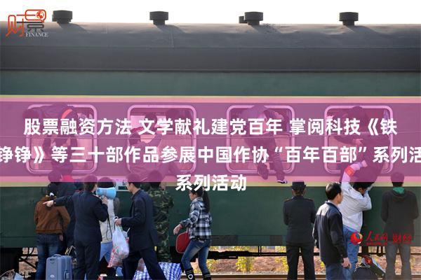 股票融资方法 日前,由中国作家协会网络文学中心主办的“庆祝中国共产党成立100周年网络文学‘百年百部’系列活动”启动仪式圆满落下帷幕。中国作协党组成员、书记处书记胡邦胜,中国作协网络文学中心主任何弘,知名网络文学作家唐家三少,掌阅科技创始人张凌云等列会。仪式上,网络文学中心宣布将建立“百年百部”网络文学创作工程作品库,同时发布了2021年度网络文学选题指南及“全国重点文学网站优秀网络文学作品联展”信息。掌阅科技《铁骨铮铮》《人民医生》《追梦人》《最美逆行者》《沉默之觉醒》等三十部作品参展。 作...